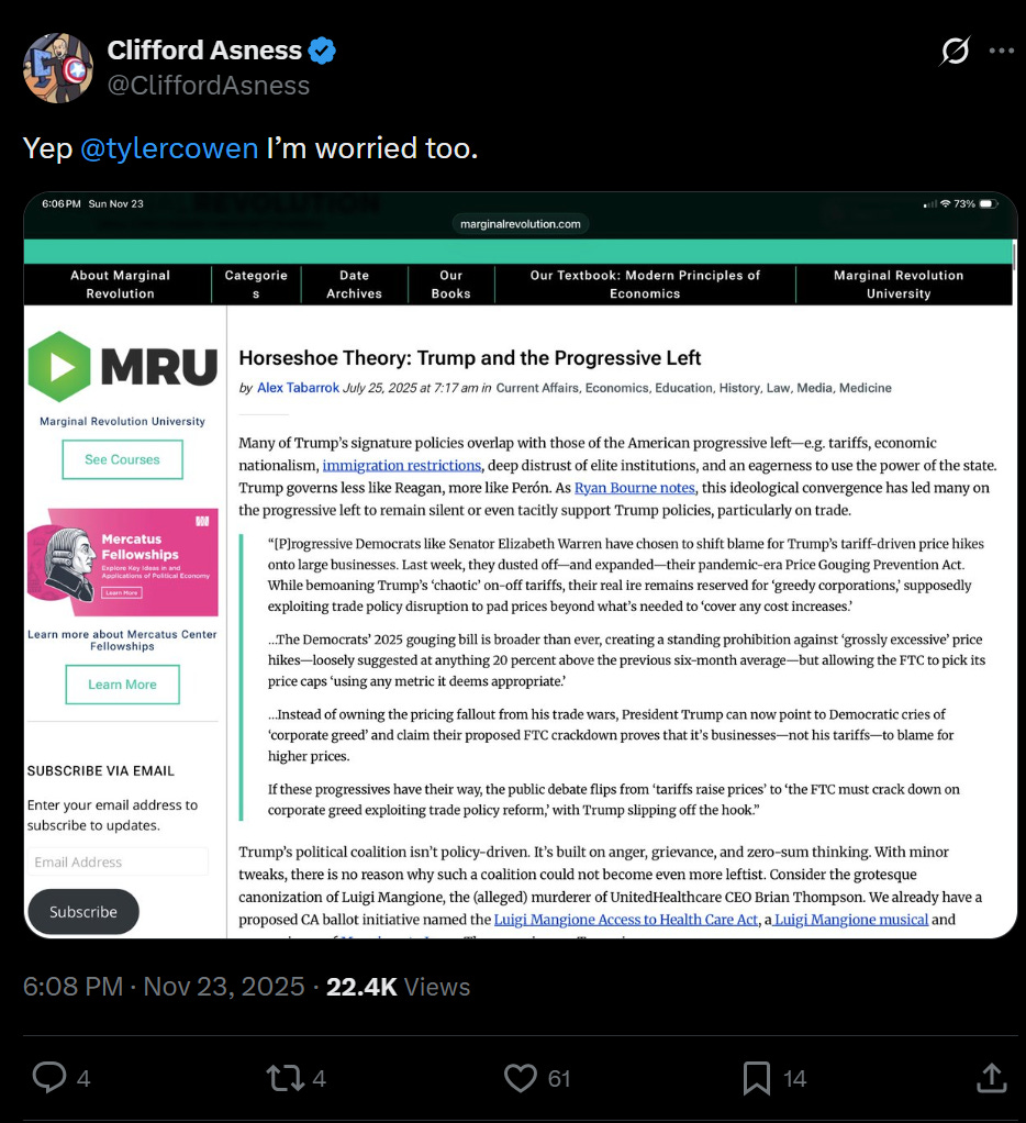 Also it got shout outs by Cliff Asness and Marginal Revolution, so looks like a solid hit.