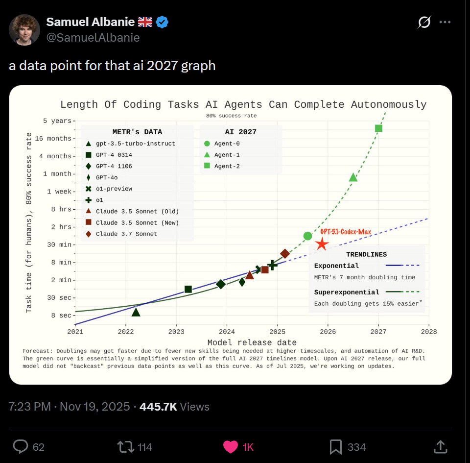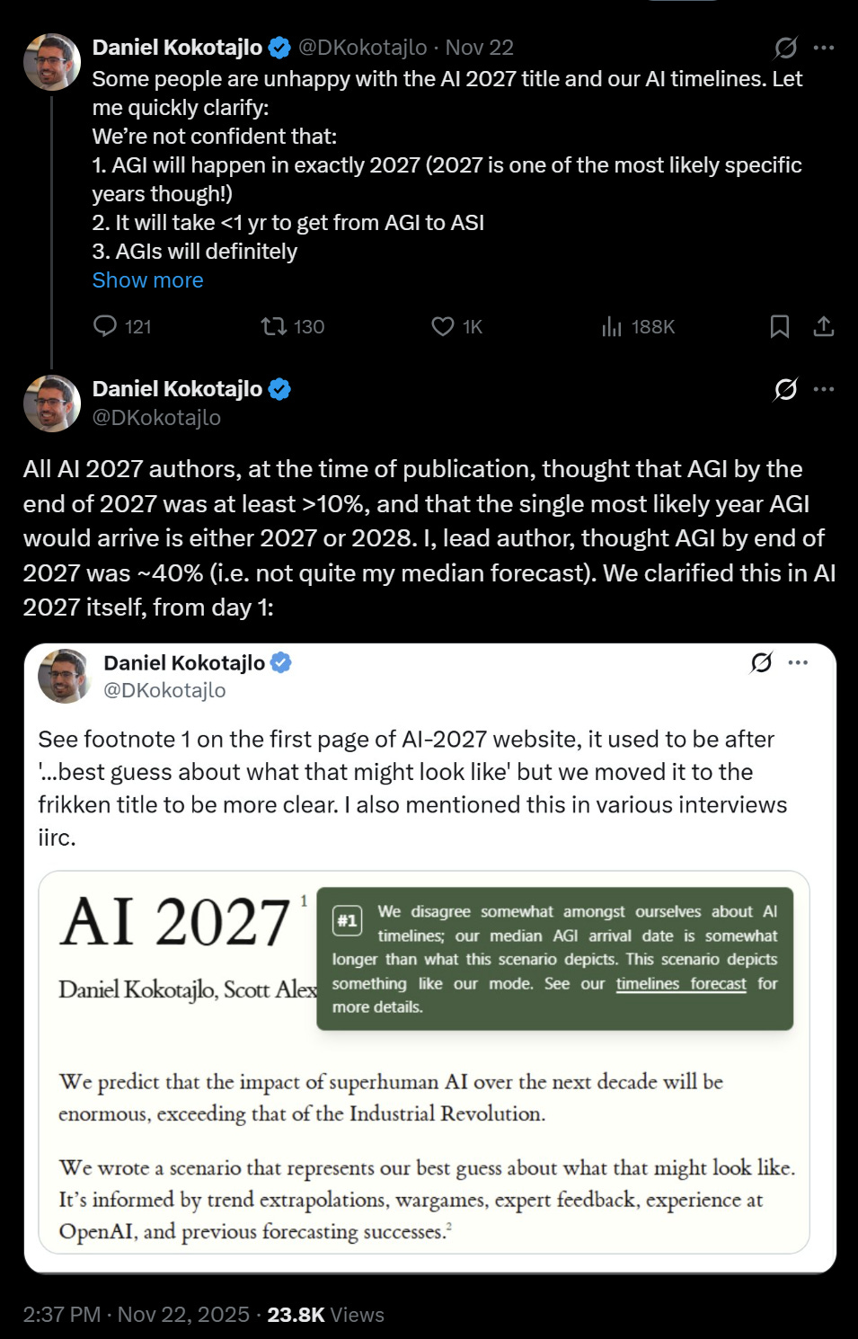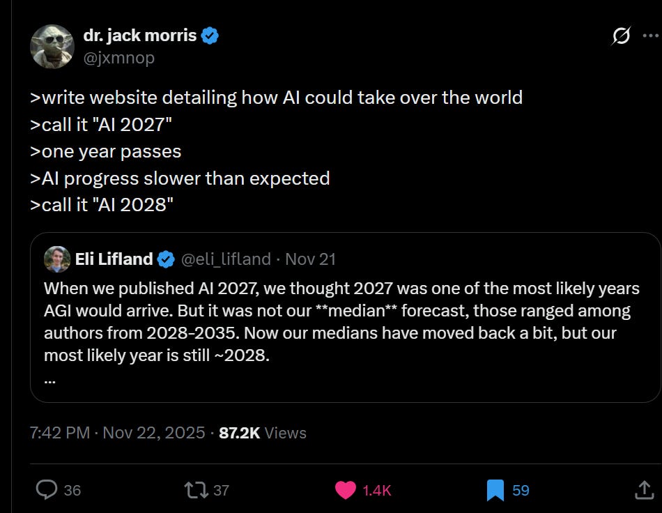 As predictions like those outlined in “AI 2027” are now clearly off track.