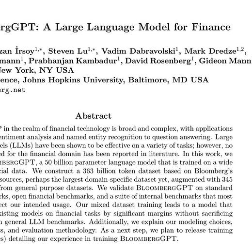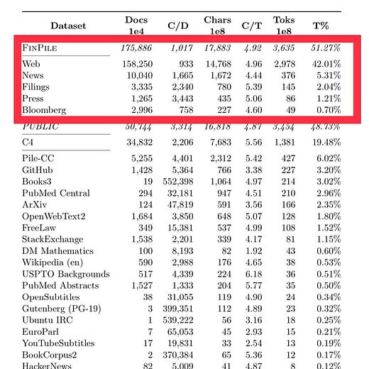 Much like many other popular Large Language Models, Bloomberg trains on ‘words’ and ‘tokens’ and NOT individual time series or tables. In fact, the vast majority if it similar to other training models which scrape cleaned up versions of web / public data (with some Bloomberg NEWS articles thrown in for help with the domain.