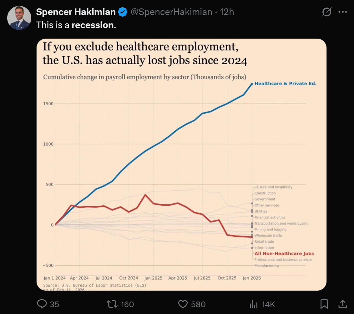 This isn’t a victory lap - there’s plenty of pain elsewhere in the book. But it’s confirmation that even when the macro picture is murky, the micro story on AI displacement is playing out faster than people expected. The “automation economy” thesis isn’t 2027. It’s now.