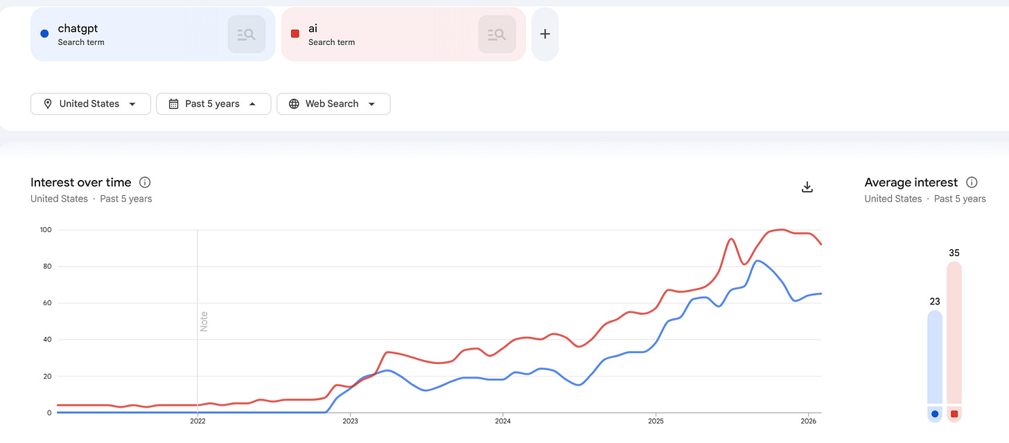 Then ChatGPT dropped in November 2022 - and if you look at that drawdown chart, the market bottomed within weeks. Over the next three years, people looked at what was happening, tried the tool, and kind of went “I don’t really know what’s going on, but I want to own tech.”