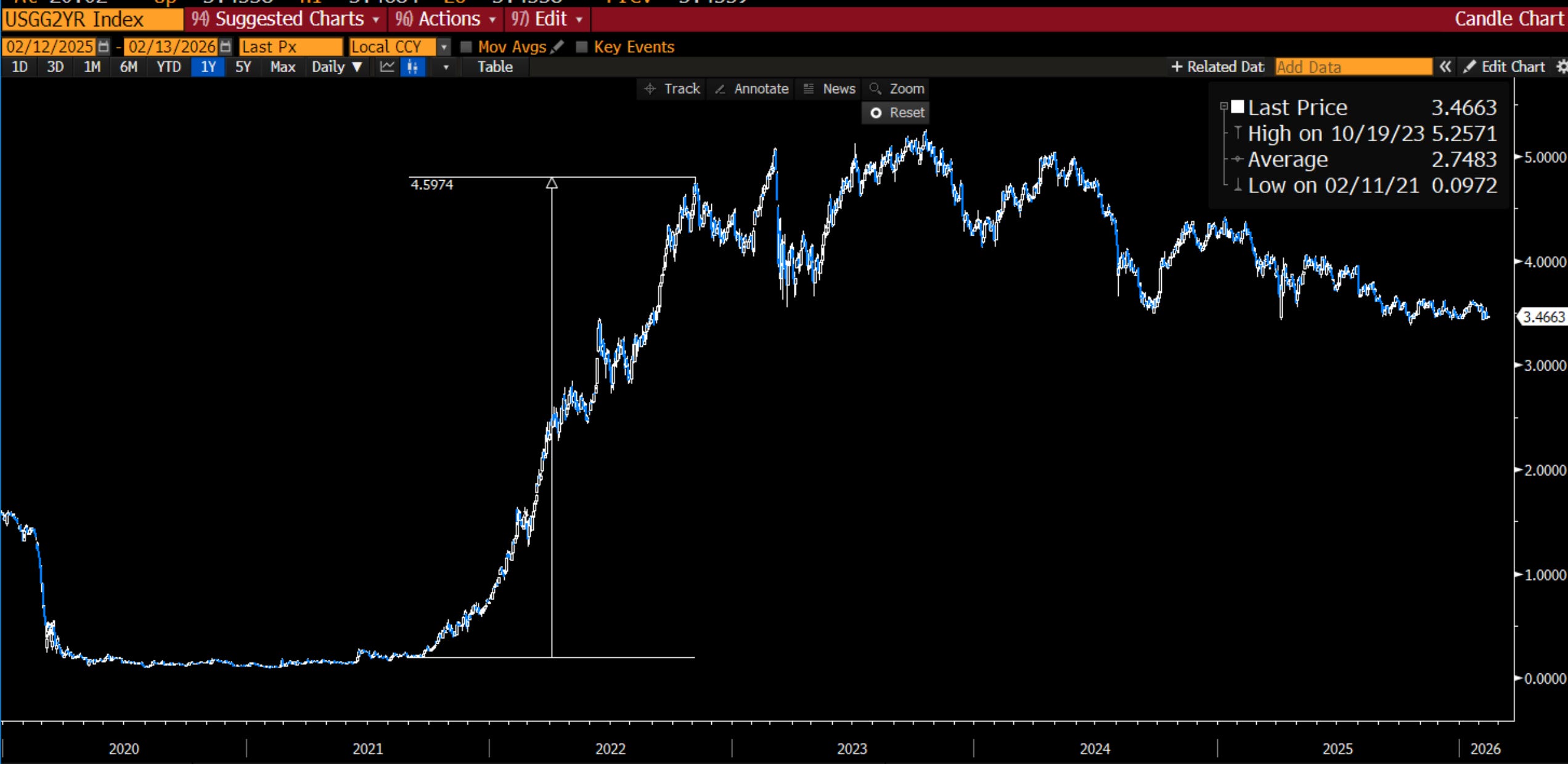 Remember late 2022? Inflation peaking, two-year rates up 450 basis points in a single year, S&P in a drawdown approaching 30%. The soft data looked recessionary. A lot of us (myself included) were worried.