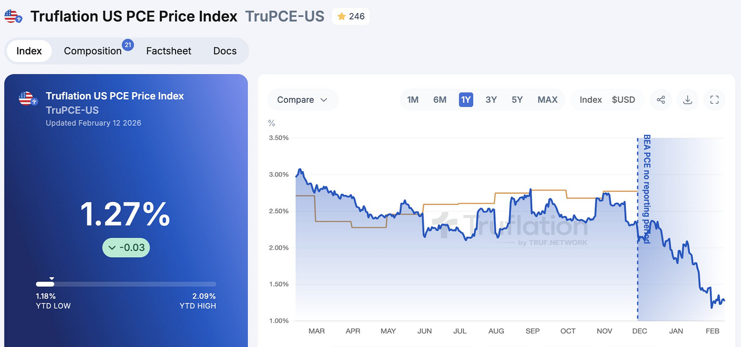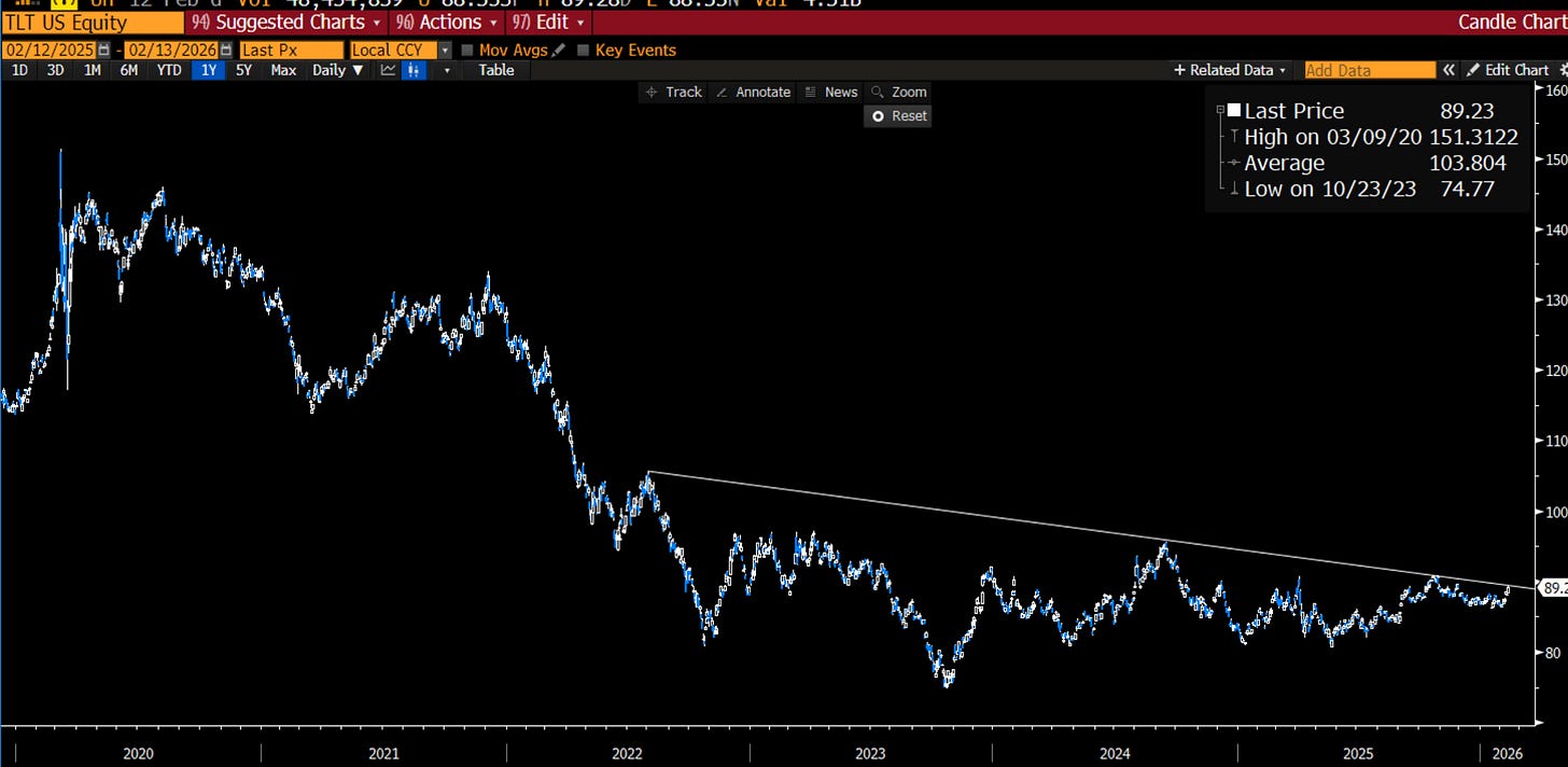 If Truflation is right, the Fed has room to ease. Bonds may have gotten the message - in spite of the Warsh = Volcker 2.0 meme that sparked the metals selloff a few weeks ago. (I lifted my bond short today.)