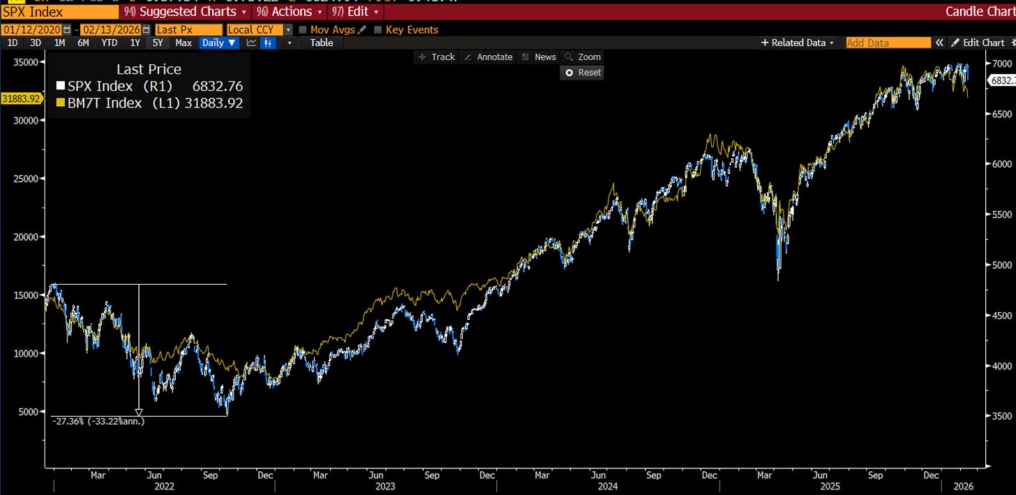 As we’ve covered before, markets that are excessively concentrated AND excessively crowded - meaning not just the index is concentrated, but the investor base is correlated - that’s a recipe for volatile unwinds when narratives shift or funding conditions change.