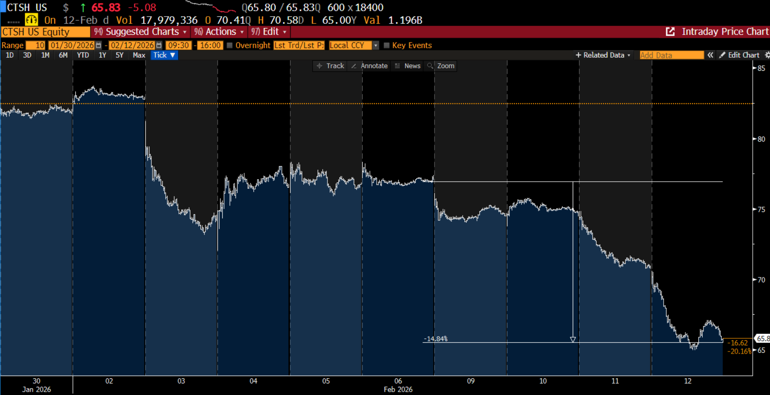 Even in this mess, one trade is working exactly as expected: AI is eating white-collar services.