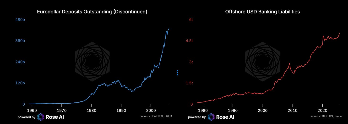 This also connects directly to the stablecoin story we covered in Dollar Doomers. While Xi is talking about reserve currency status, Chinese citizens are voting with their feet — and their wallets. Tether went from $40B to $200B+ in four years, with significant growth from EM users (including Chinese) seeking dollar access through crypto rails. The grassroots are re-dollarizing even as the officials de-dollarize. That tells you something about revealed preferences.