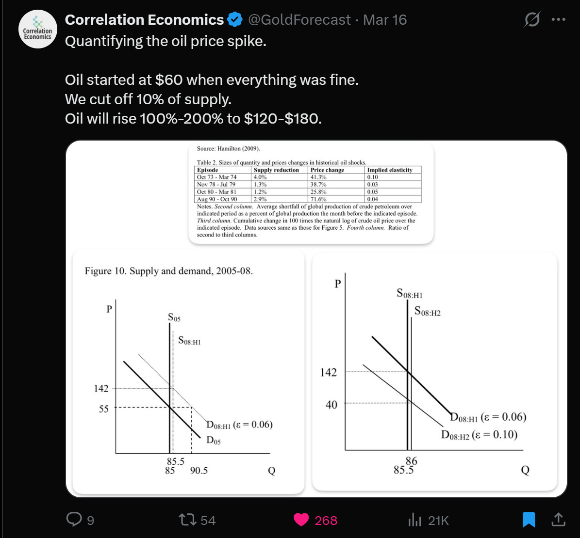 But, in a world where this is the beginning, where it’s the final battle, and will take weeks, months, or gasp, years to fully resolve, well that really sucks. Not only because it means we get energy inflation, which means tightening (ugh), but it also means other kinds of cost-push inflation (no helium means less chips, which means less data centers, which means less FLOPs, which means the cost of training and inference just went UP). It actually means a slower acceleration.