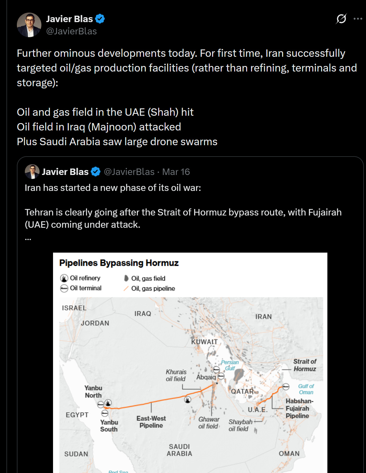 Iran gets to play the chokepoint game right up until they realize that the Rimland power they’re poking controls the rest of the ocean. And they’ve already hardened the GCC countries against them by attacking Kuwaiti, Emirati, and Saudi infrastructure. Those were supposed to be neutral parties. Now they’re collateral damage. Every drone Iran sends at a UAE oil field is another country that has no choice but to join the coalition whether the Europeans show up or not.