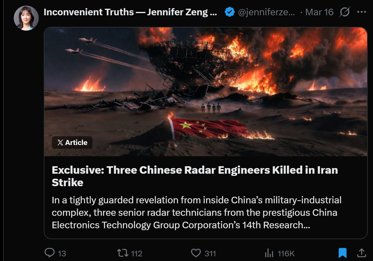 For Ray's historical parallels to work, you would basically need China to come to the rescue of Iran via naval power. Providing anti-air and drone manufacturing power alone will not do (though it seems pretty clear they are doing that too, especially if the reports that a bunch of Chinese radar and drone folks were casualties of US strikes are to be believed, which who knows!).