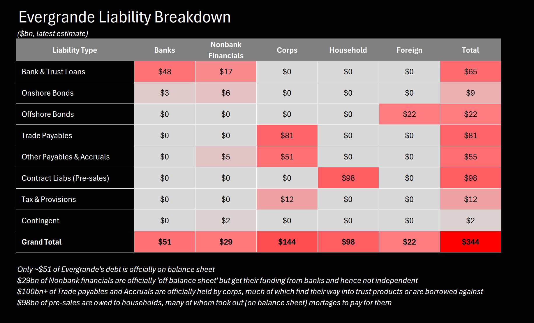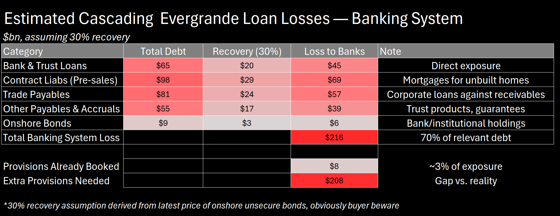 After ten years watching them refuse every opportunity to take the pain, after tracking Evergrande’s non-resolution for four years, here’s my distribution: