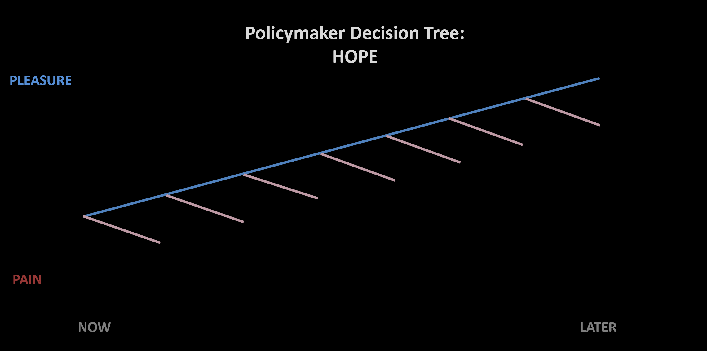 The hole keeps getting deeper. What could have been $1T in 2018 could be $5-10T in 2025. The policymaker decision tree isn’t hope—it’s exponentially increasing pain.