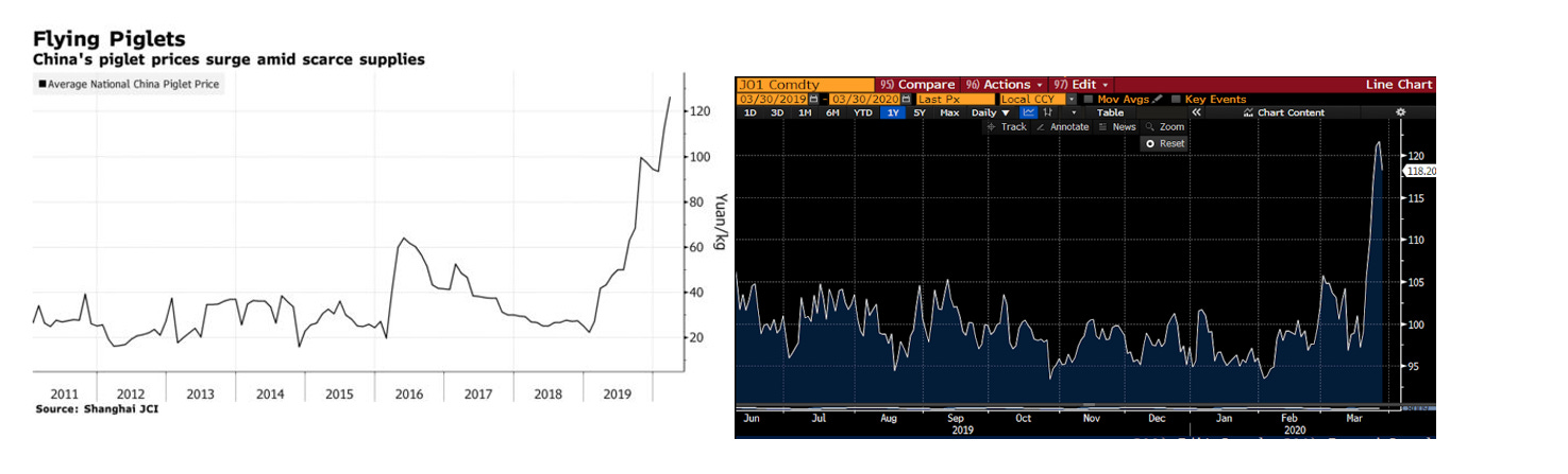 For example: the price of piglets in China is up 5x in 18m and Orange Juice has rallied 20% in the last 10 days.