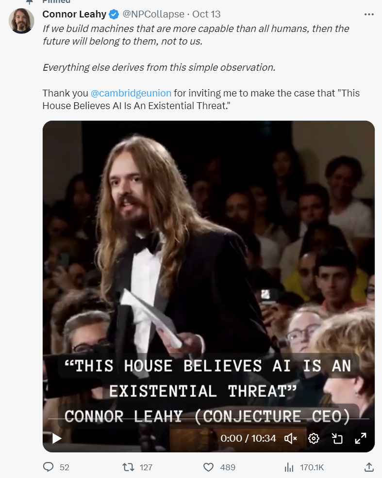 I’ve tried to raise this (jokingly) online. Much to the chagrin of the Doomers. Which makes sense! If you are pushing to ‘pause’ AI, then highlighting how almost all the leaders in the movement explicitly gain to benefit from the existential technology complex is pretty dissonance provoking.
