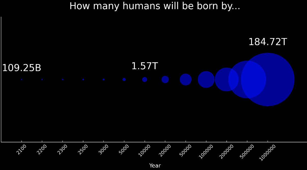 You need to “open the aperture” and roll the clock forward, and ask “how many humans could be born?”