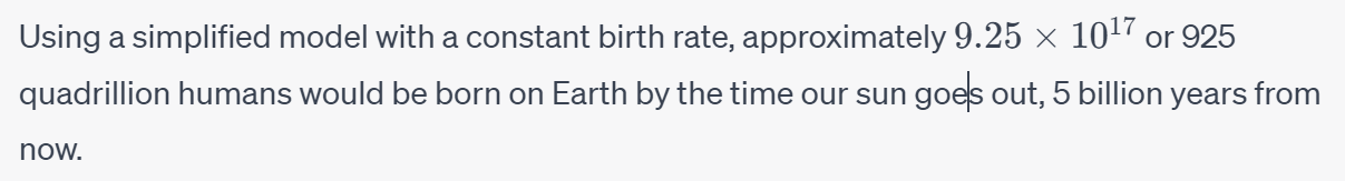 925 quadrillion humans is a lot of humans. Kinda hard number for me to wrap my head around. Let’s call it an even quintillion.