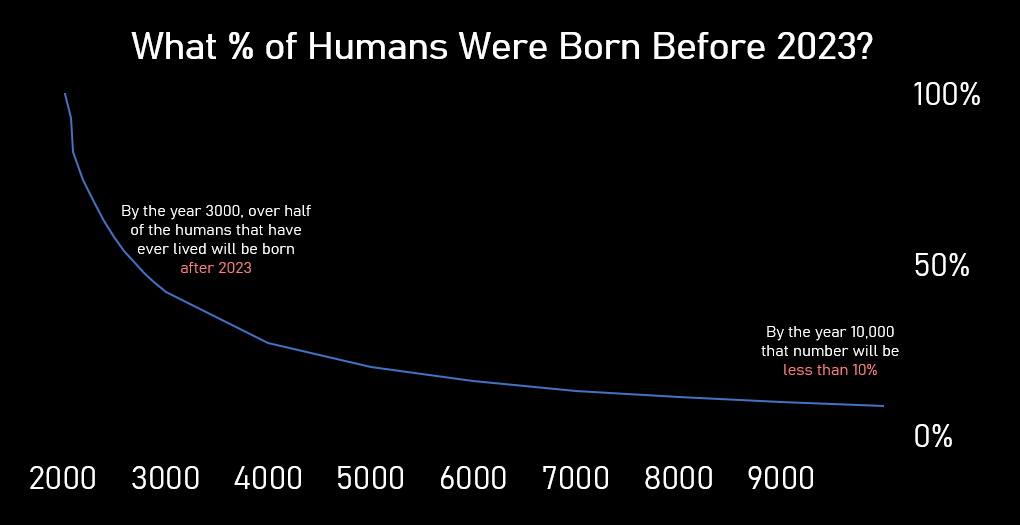 By this math, in the year 3000, the majority of humans will have yet to be born by the year 2023.