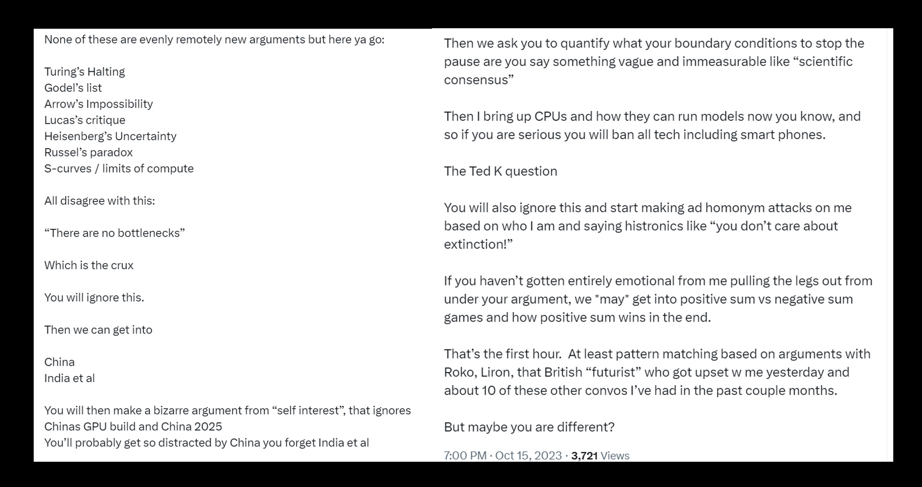 Since then, I’ve taken it upon myself to engage with some of these Doomers on X/Twitter, to gauge how flexible these frameworks are to interrogation.
