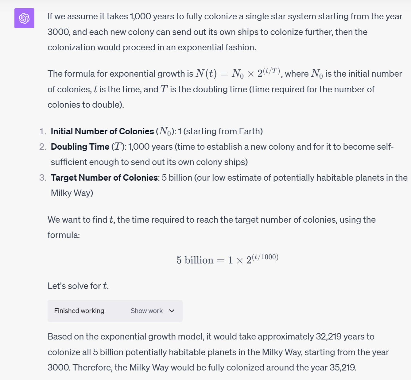 By the year 1,000,000 that number goes to 184 TRILLION.