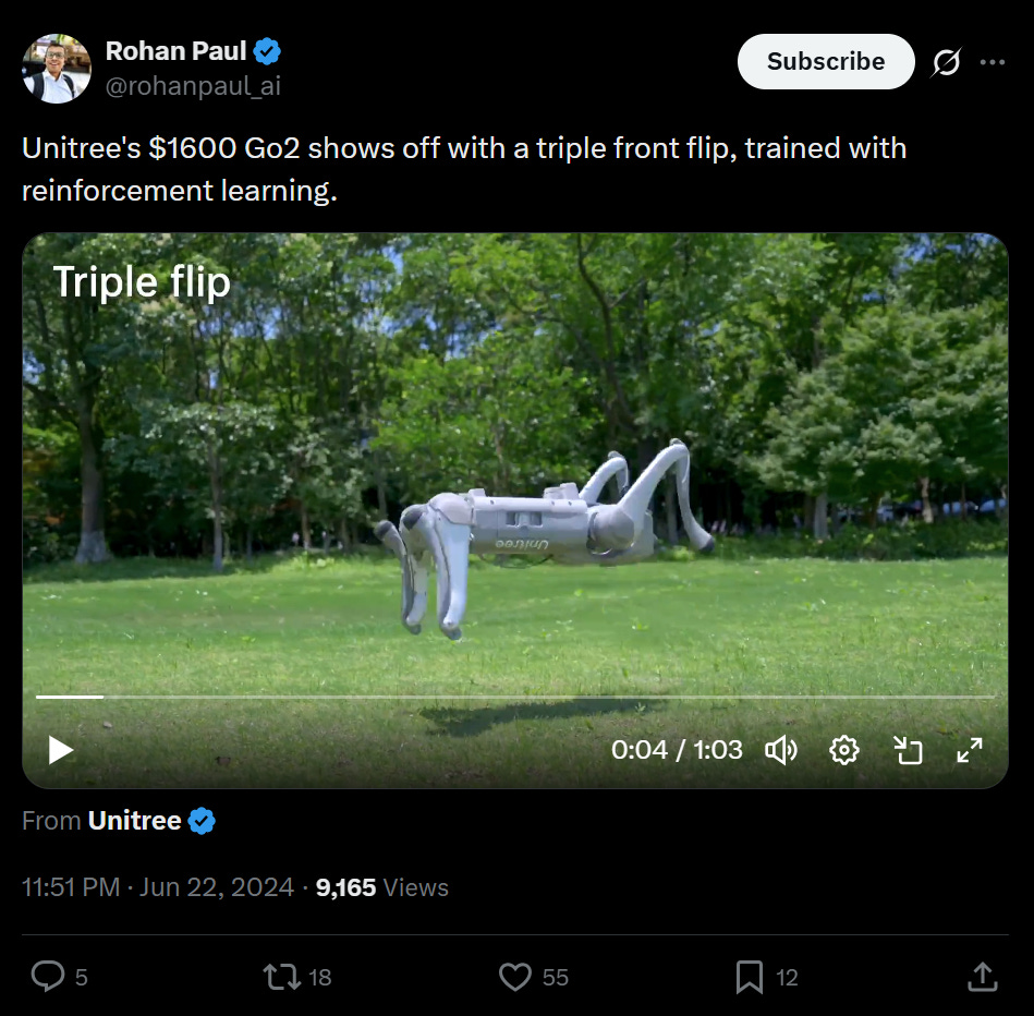 In mid-2024, Unitree released a video of its $1,600 Go2 robot dog doing a triple front flip. Not single. Not double. Triple. Millions of views.