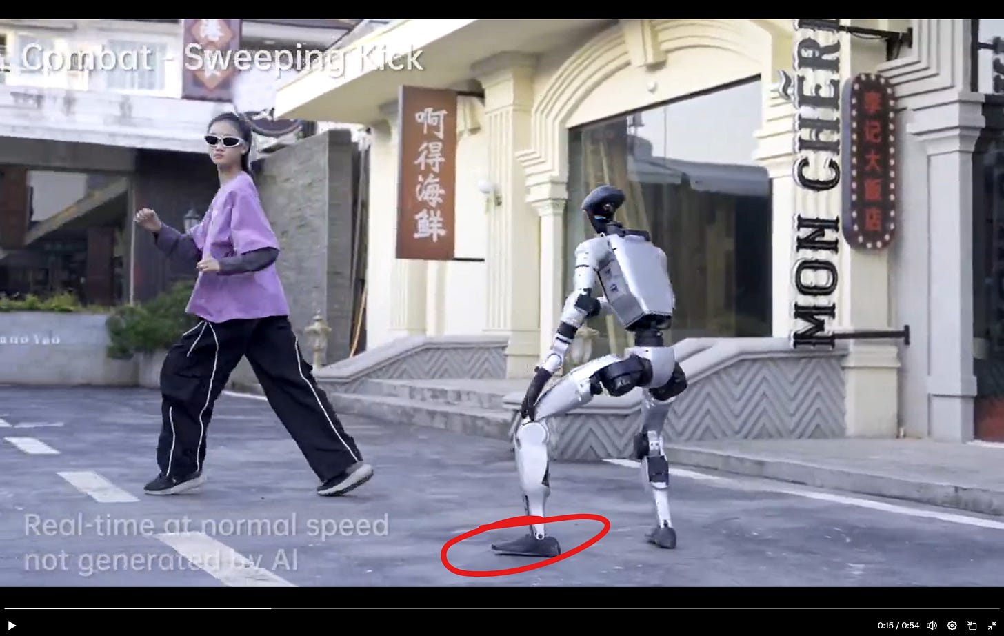 So here we are with “Rock ‘Em Sock ‘Em Robots.” Because that’s what these videos are. Combat theater. Propaganda that looks like product demos. Footage designed to land in your feed, shape your priors about who’s winning the tech race, and move on before you check the physics.
