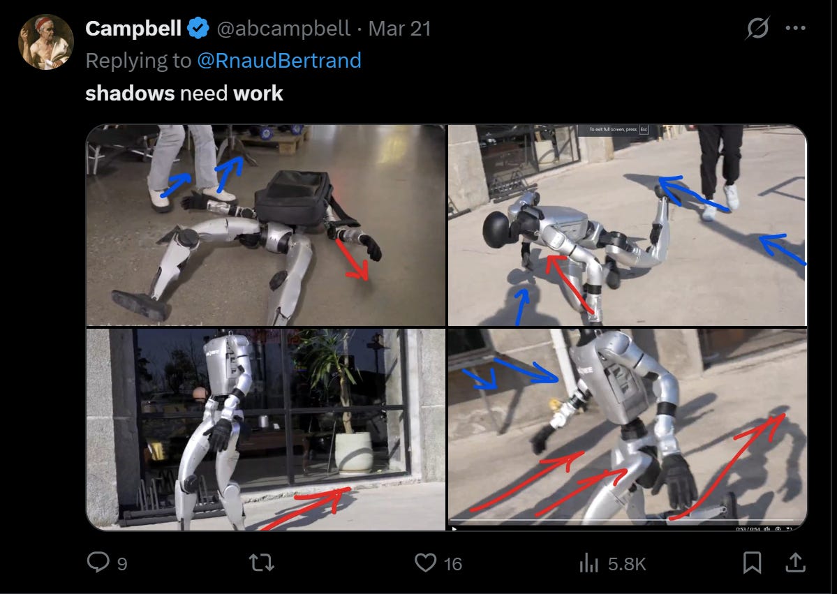 Fake robots do physics-defying triple flips, march in CGI armies, and come pre-loaded with disclaimers insisting they’re real. They appear once, go viral, and are never mentioned again, because replication would require capability, not render farms.