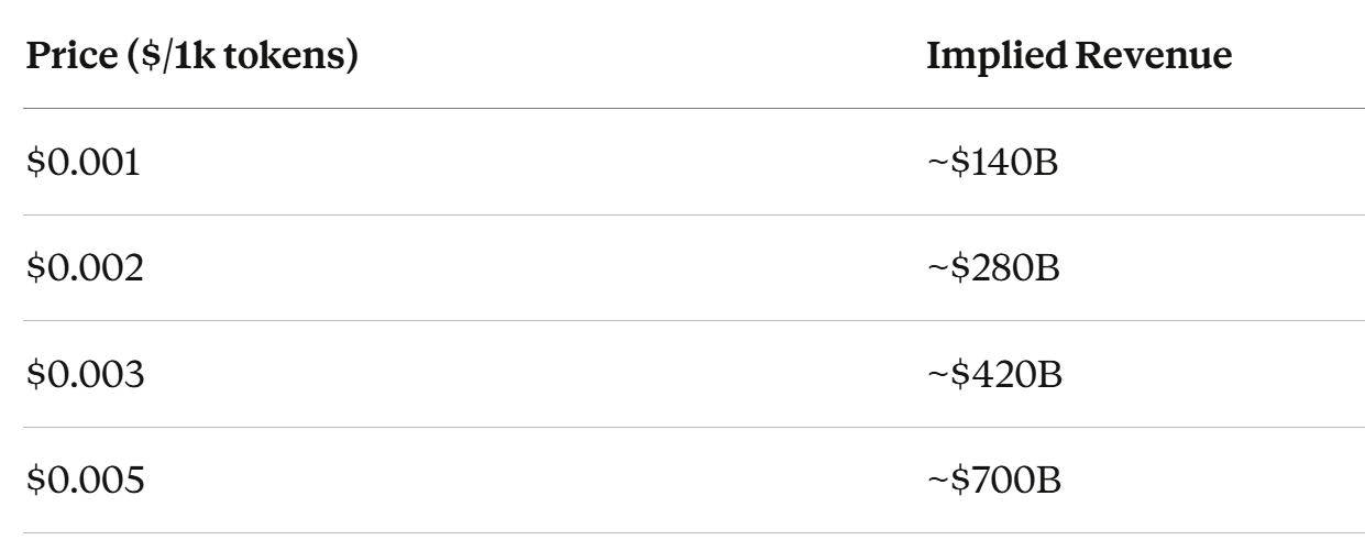 (Realized price per 1k tokens) × (Tokens processed per year) ≥ (Annual capex + R&D + power)