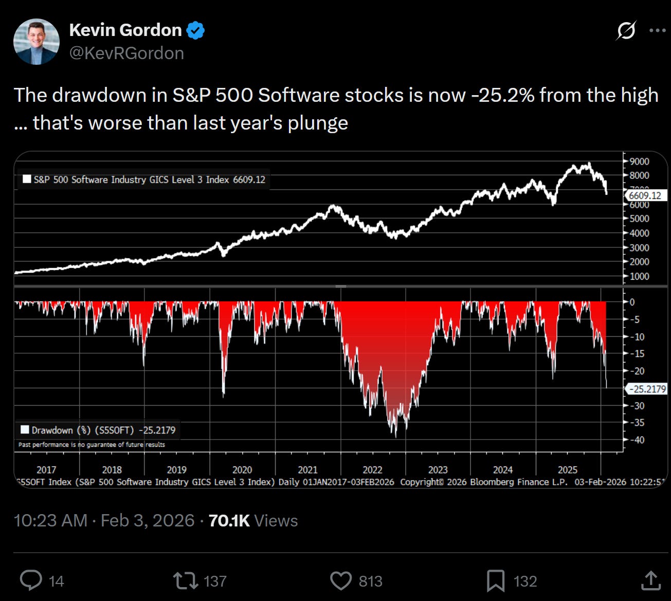 At this point, this letter isn’t early in telling you that software companies, particularly those outside the Mag7, particularly those in SaaS, are suffering.
