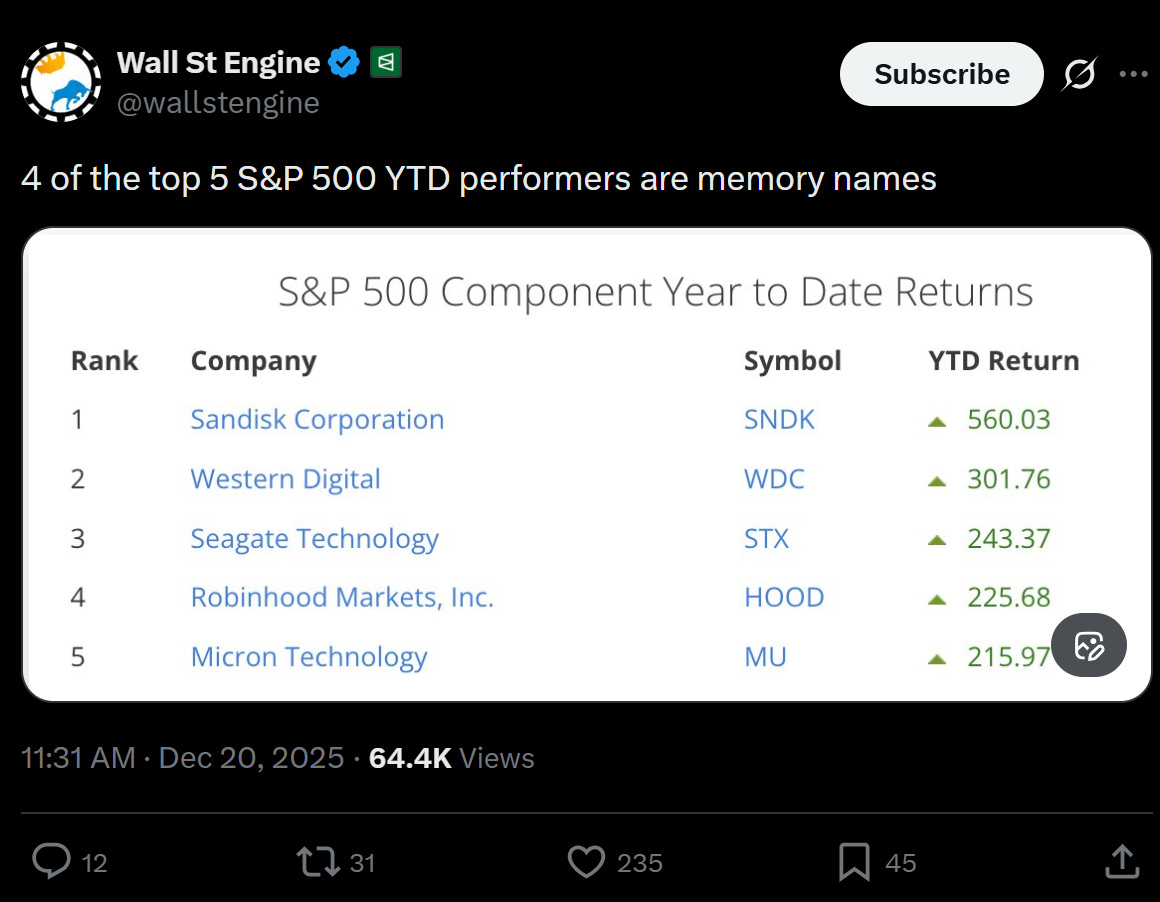 So put yourself in the place at the head of one of these labs. You know that a) the biggest model pretty much wins, and b) the agents are coming. Which then drove a mad dash for all things compute, GPUs (the story of 2024), memory (the story of ‘25), and all the other things that went into it (even things like solar panels, which you have heard enough from me about for a while I bet).