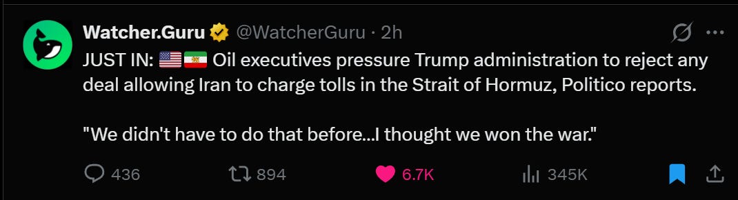 But if Iran keeps enrichment, which their 10-point plan explicitly demands, then you cannot also give them the strait. A nuclear-capable Iran with a toll booth on 20% of the world’s oil is not a concession. It’s capitulation. You can trade one for the other. You can’t keep both.