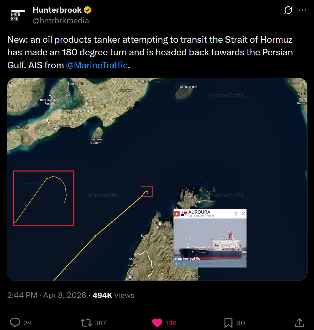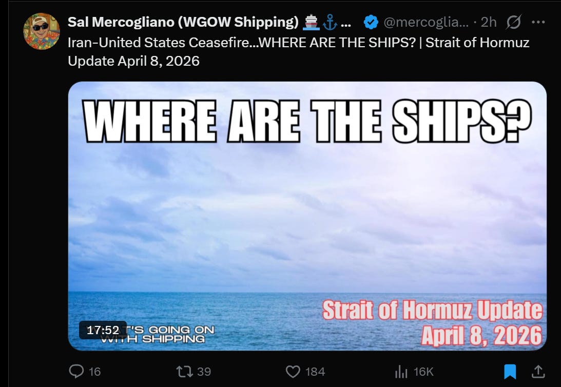 Zero oil tankers. Four dry cargo ships. Remember the folks on those boats, and the insurance companies behind them don’t live in the world of promises. They have to live with the downsides from ambiguity made real.