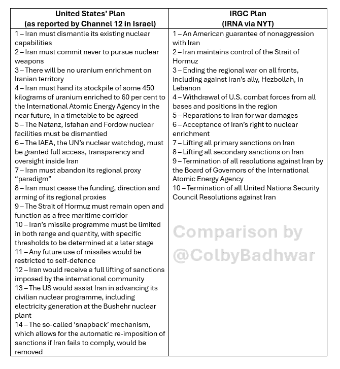 Iran’s 10-point plan includes continued enrichment. Trump posted this morning: “There will be no enrichment of Uranium.”