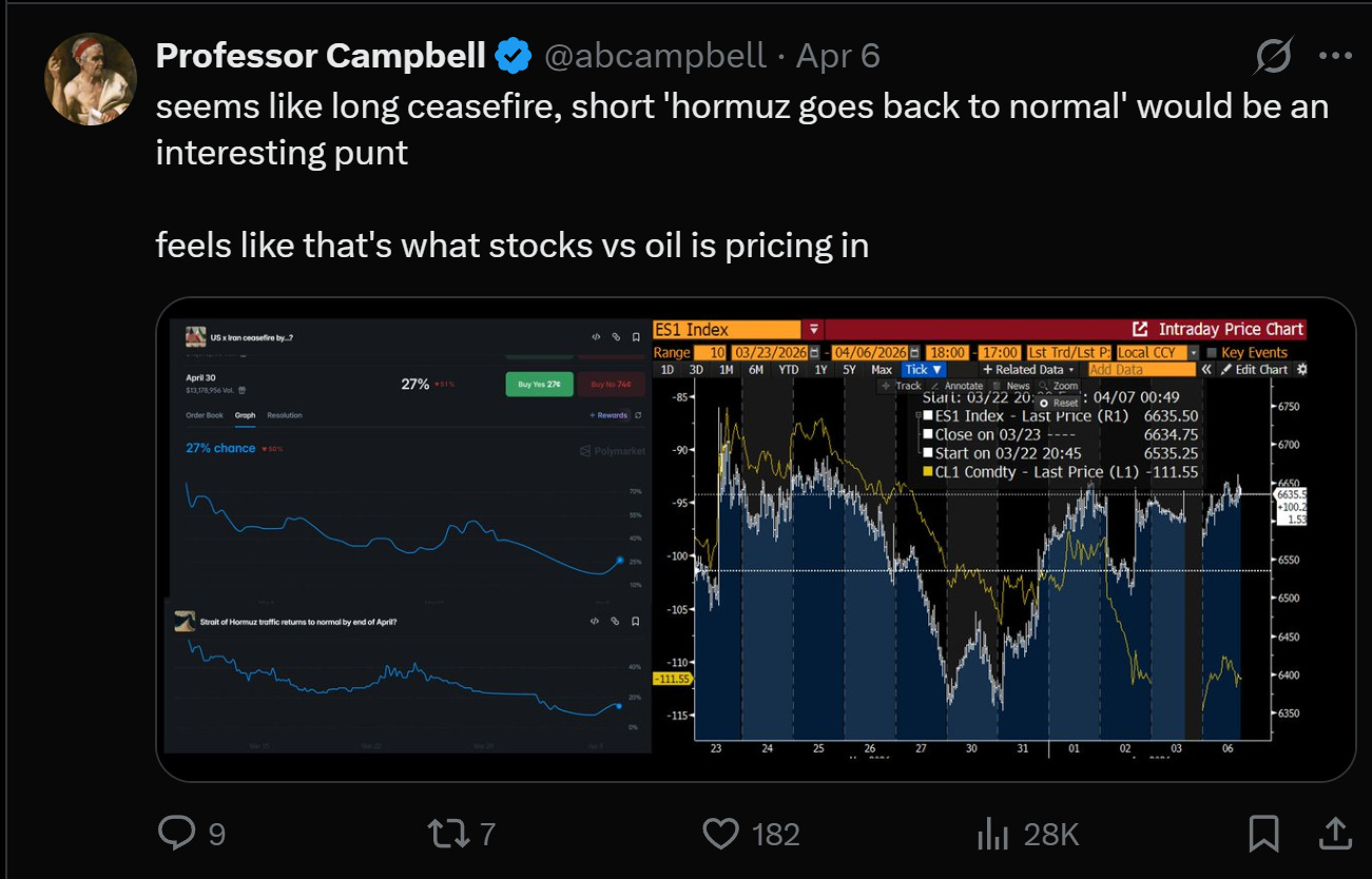 The market held on to the consensus that if both sides WANT a deal, one would be reached. Maybe. But peace without capitulation requires both sides to claim victory. That works when the claims are cosmetic. It breaks when they touch physical reality.
