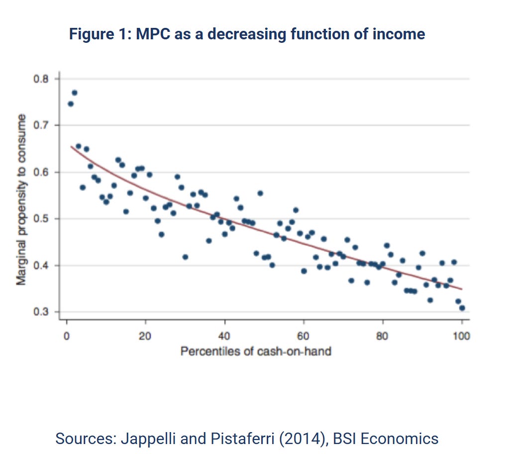 Stagnant capital is entropy. Money sitting in portfolios earning 3% is low-grade decay. Money deployed building things fights entropy. Problem: AI pushes more income to capital, which has lower spending propensity.