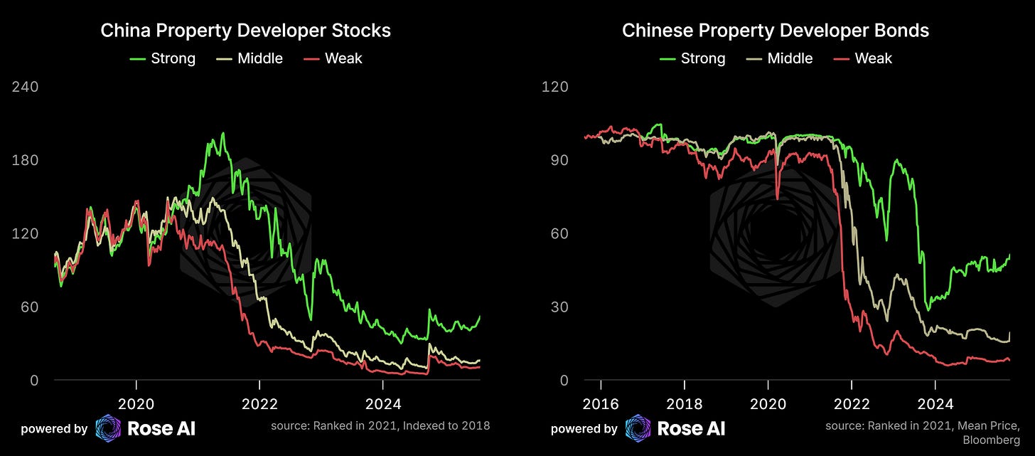 Who eats these losses: This is where it gets messy. Households lost $2-3 trillion in deposits for apartments that will never be finished. That’s wealth destruction—hits consumption and growth, not bank balance sheets directly. But the developer loans? Those are 100% on bank books. When Evergrande defaults, banks eat the $300 billion.