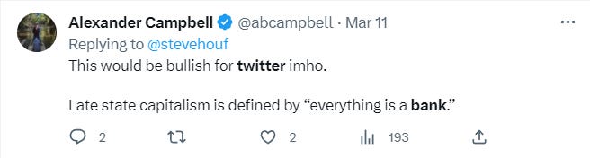 Which kind of begs the question: if Twitter is a bank…then is Apple a bank?
