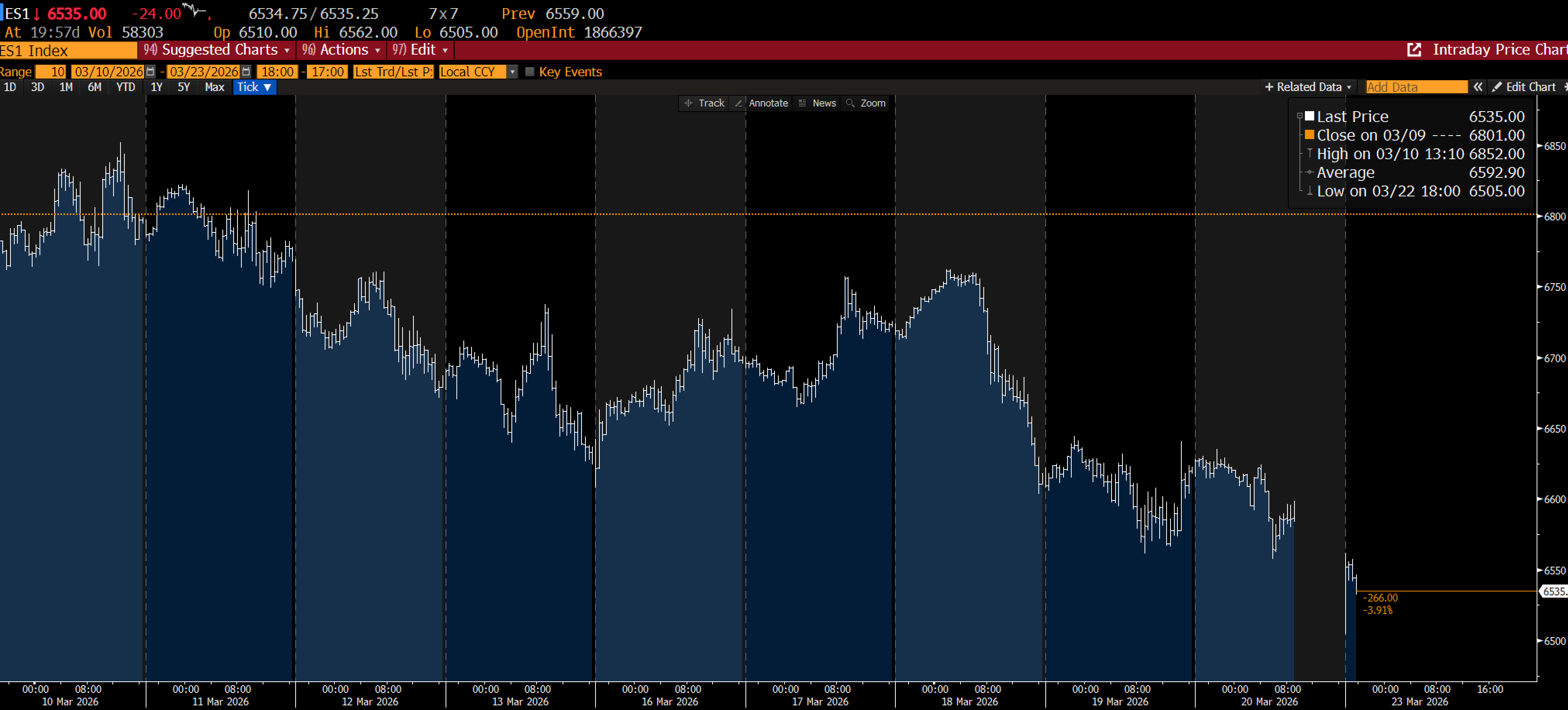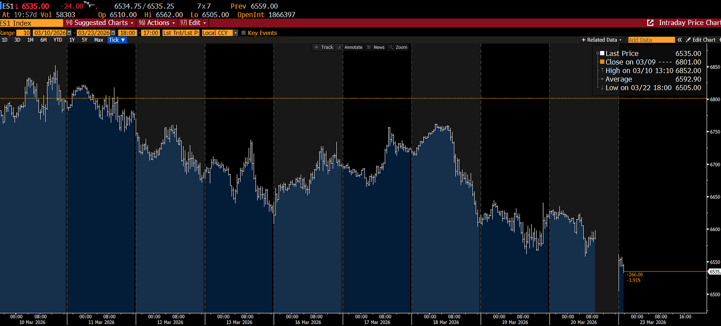 After the close Friday, Trump declares war over. Spoos rally 1.5%. Game on.