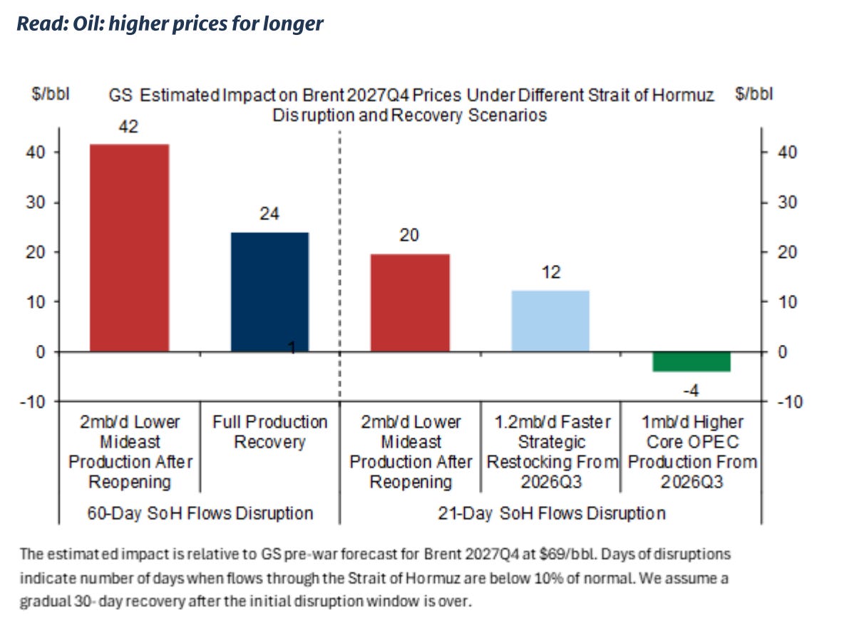 Sixty days of Hormuz closure adds $24-42 to the December 2027 contract. Given it was around $60 going in, and given the curve would be in backwardation if that occurred, the front end implies somewhere between $120 and $200/bbl.