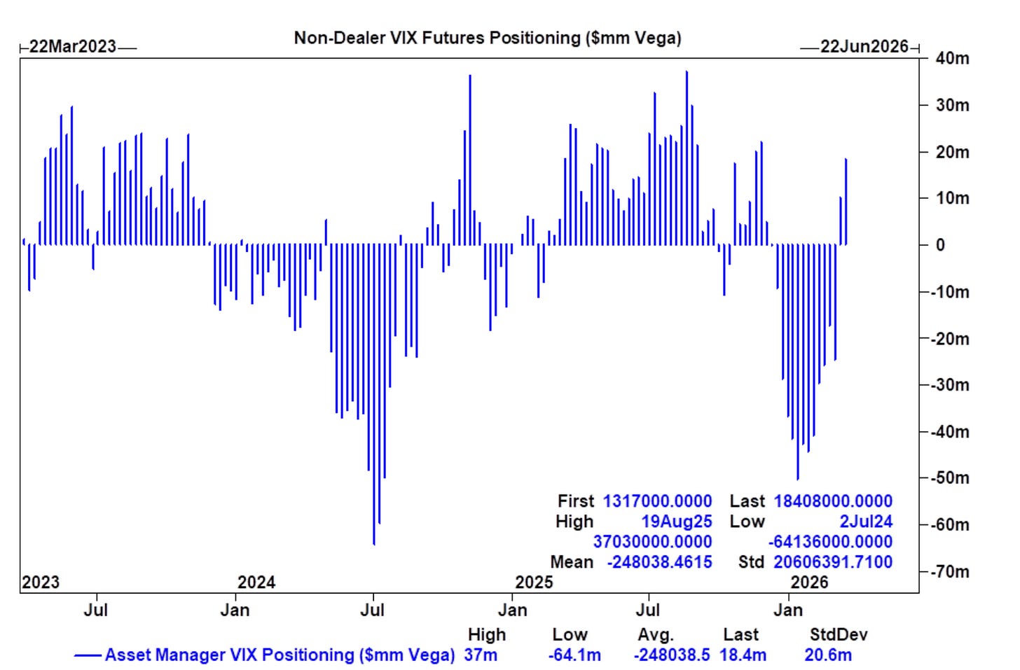 This is backed up a bit by positioning data showing non-dealers are now long VIX as well (which means the street is short).