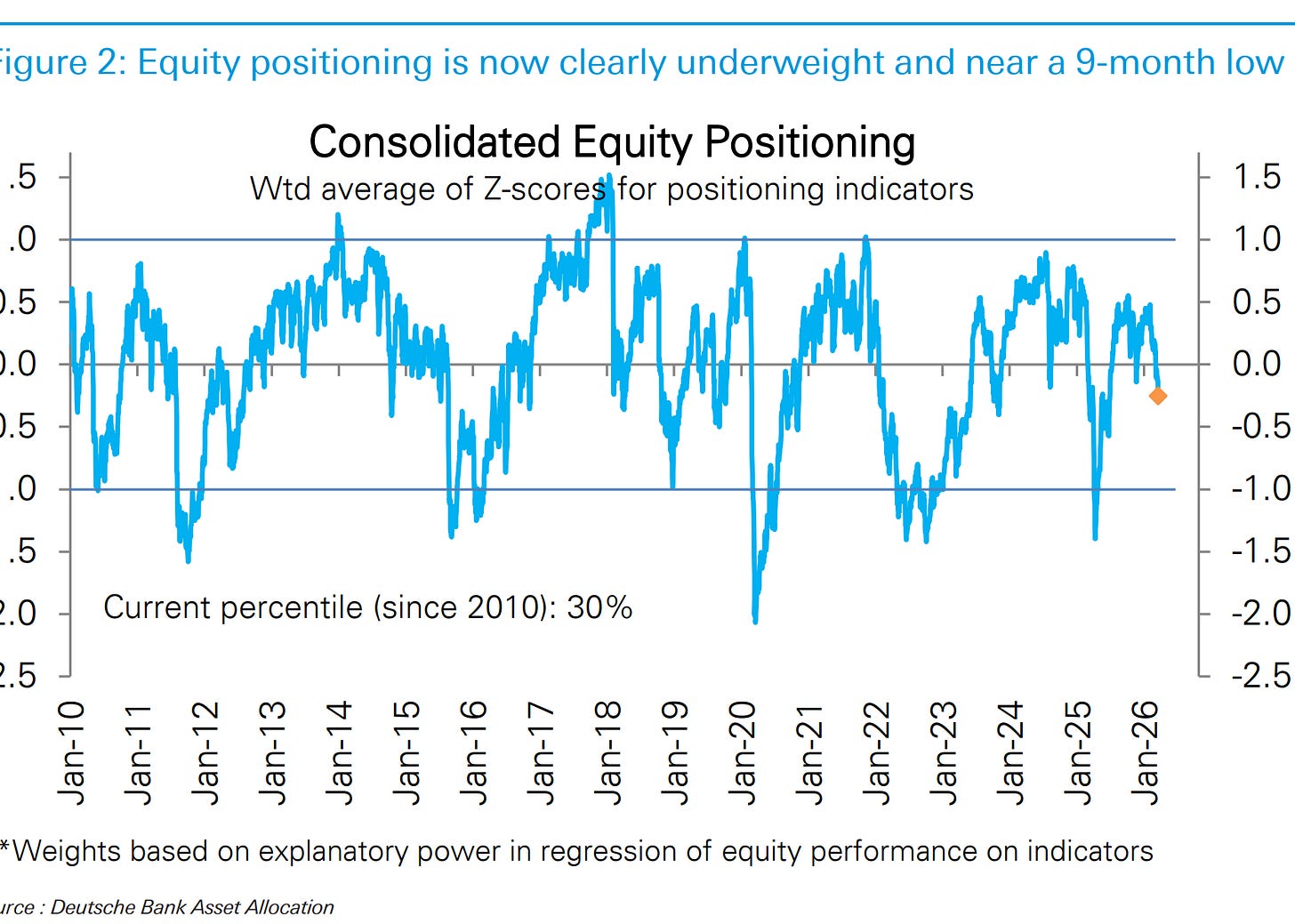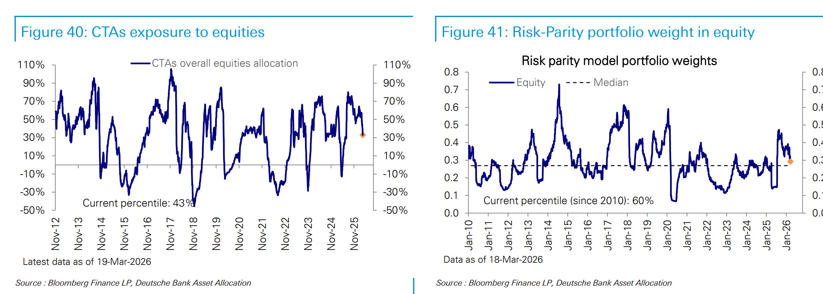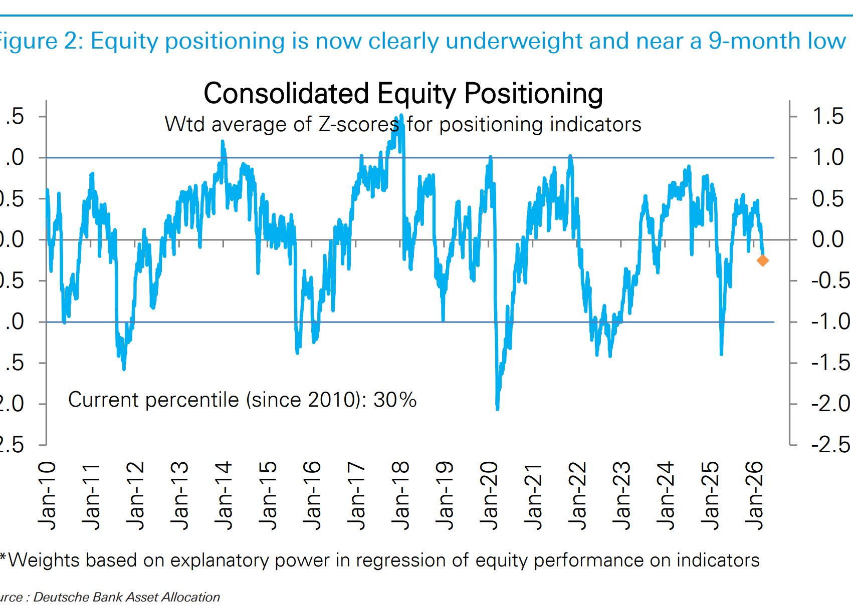 Let’s start with the fast money. Commodity Trading Advisors or CTAs, which you can read as ‘guys who trend follow and punt futures’. Depending on who you ask, they have started selling and are either very short (Goldman), or just turning short (DB).