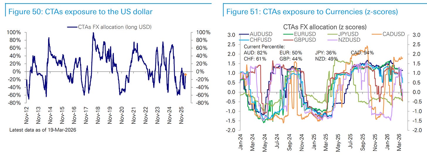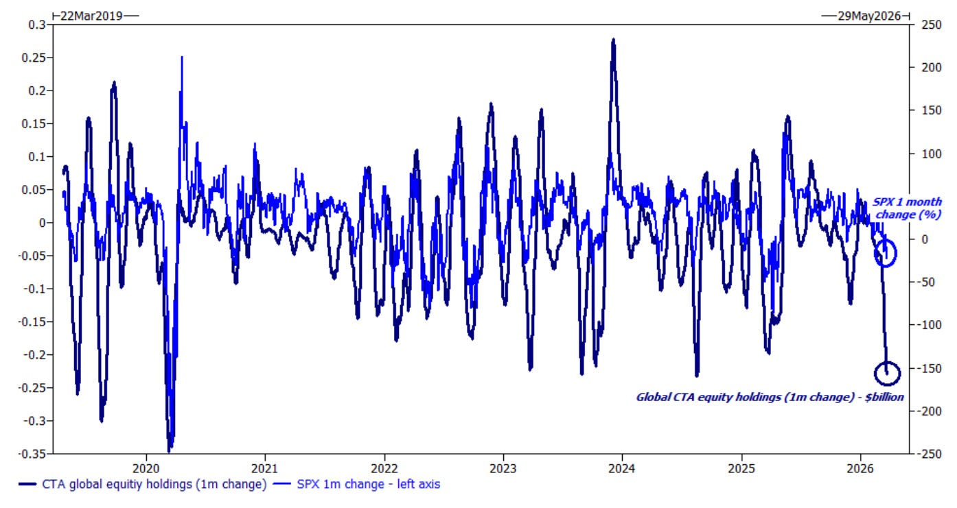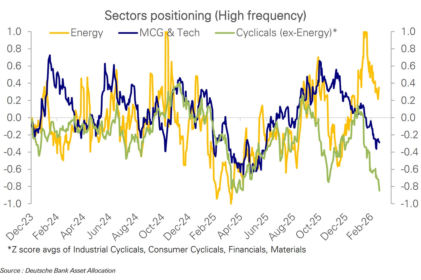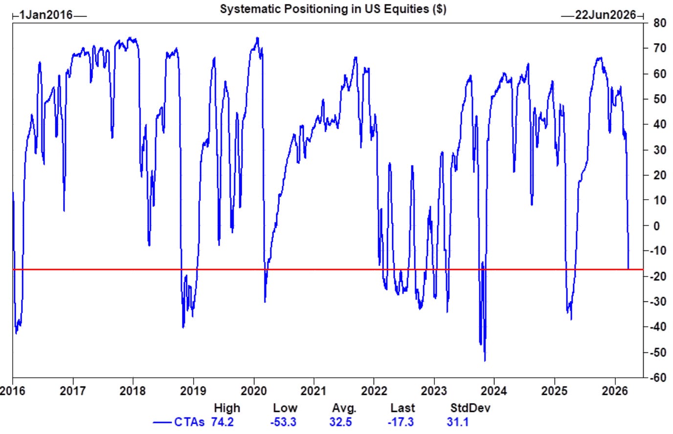 Let’s start with the fast money. Commodity Trading Advisors or CTAs, which you can read as ‘guys who trend follow and punt futures’. Depending on who you ask, they have started selling and are either very short (Goldman), or just turning short (DB).