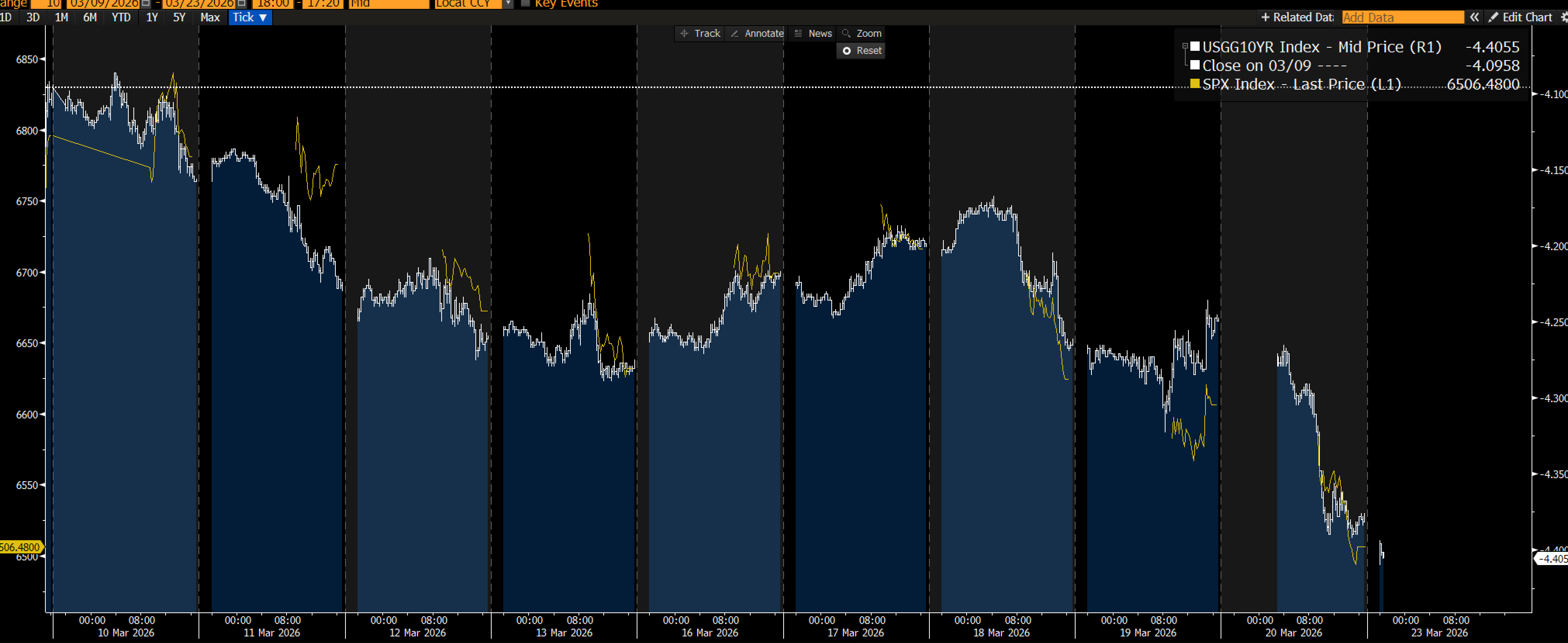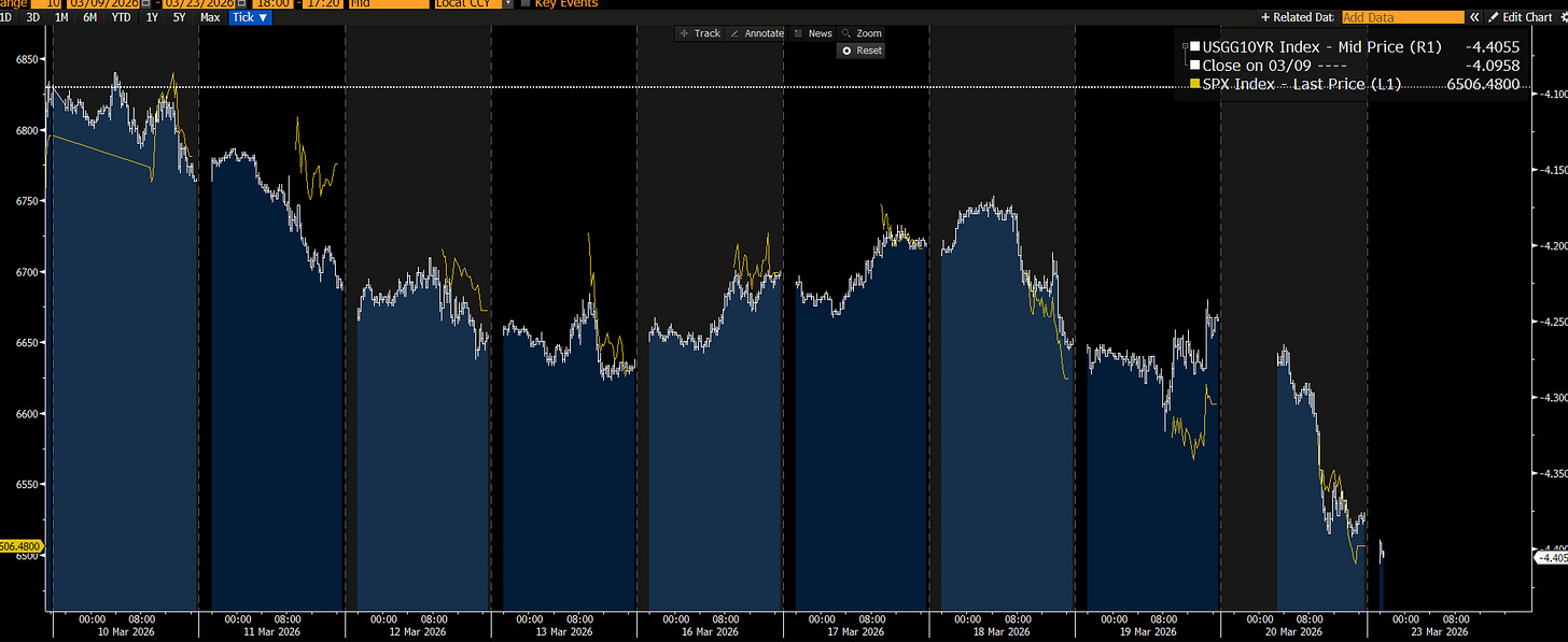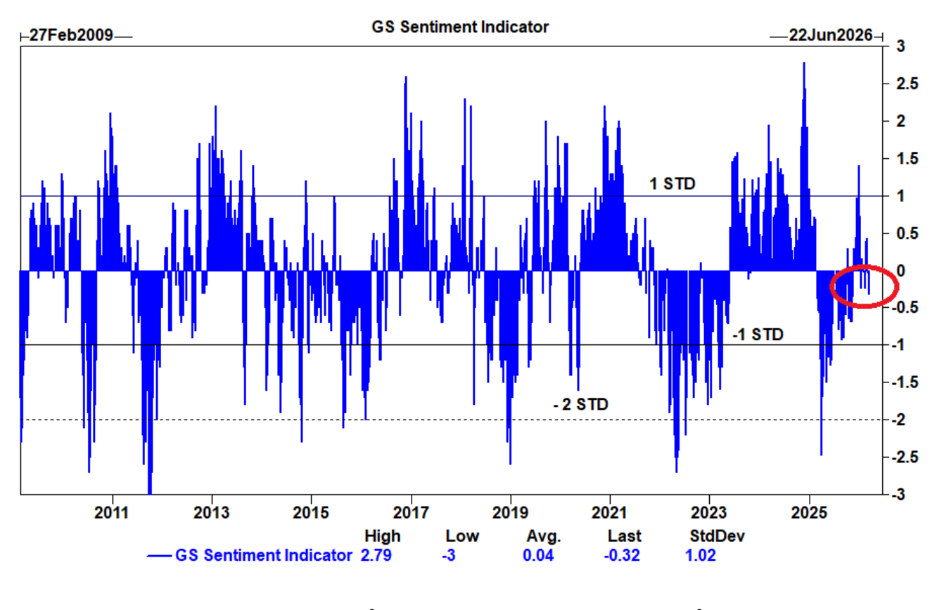 In spite of the mini rally, dollar positioning isn’t yet extended. This is one to watch as bond yields up could attract capital to treasuries as a value play, but if the liquidity needs go the other way, or Iran gets what it wants, we would see dollar down bonds down.