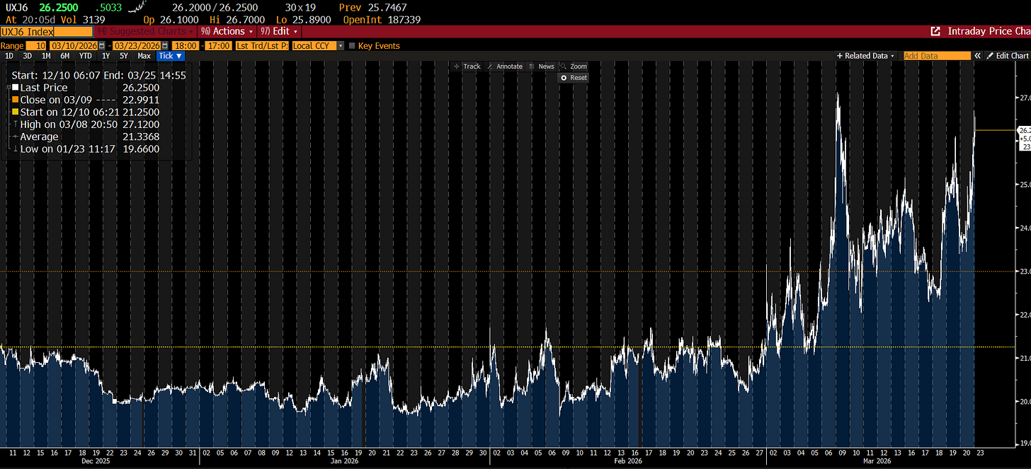 VIX has performed poorly as a hedge the last couple of weeks as implied vol got juiced at the oil highs and then dragged down along with low realized.