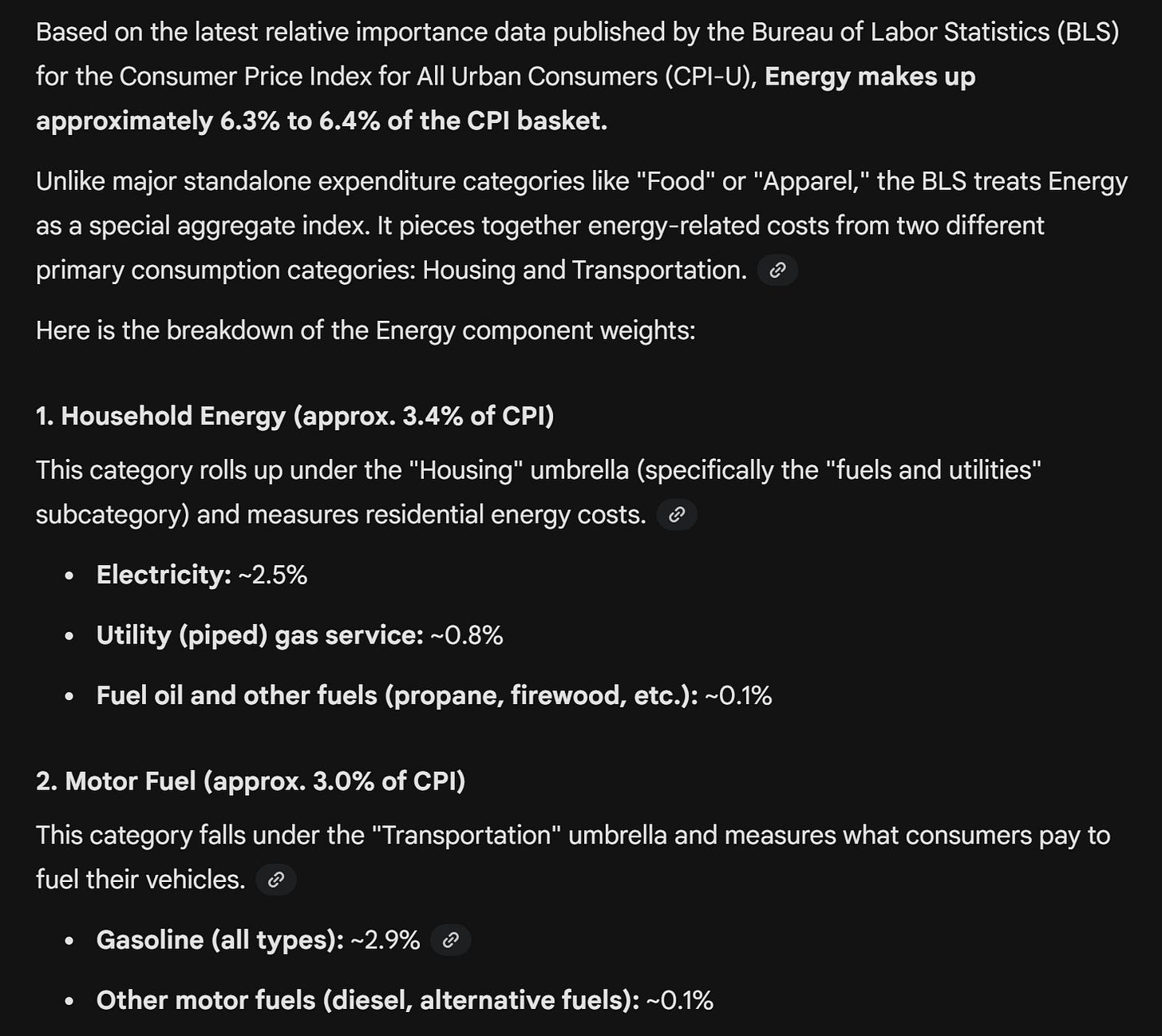 Oil has about a 45% flow-through to CPI Energy, which is around 6.4% of the basket.