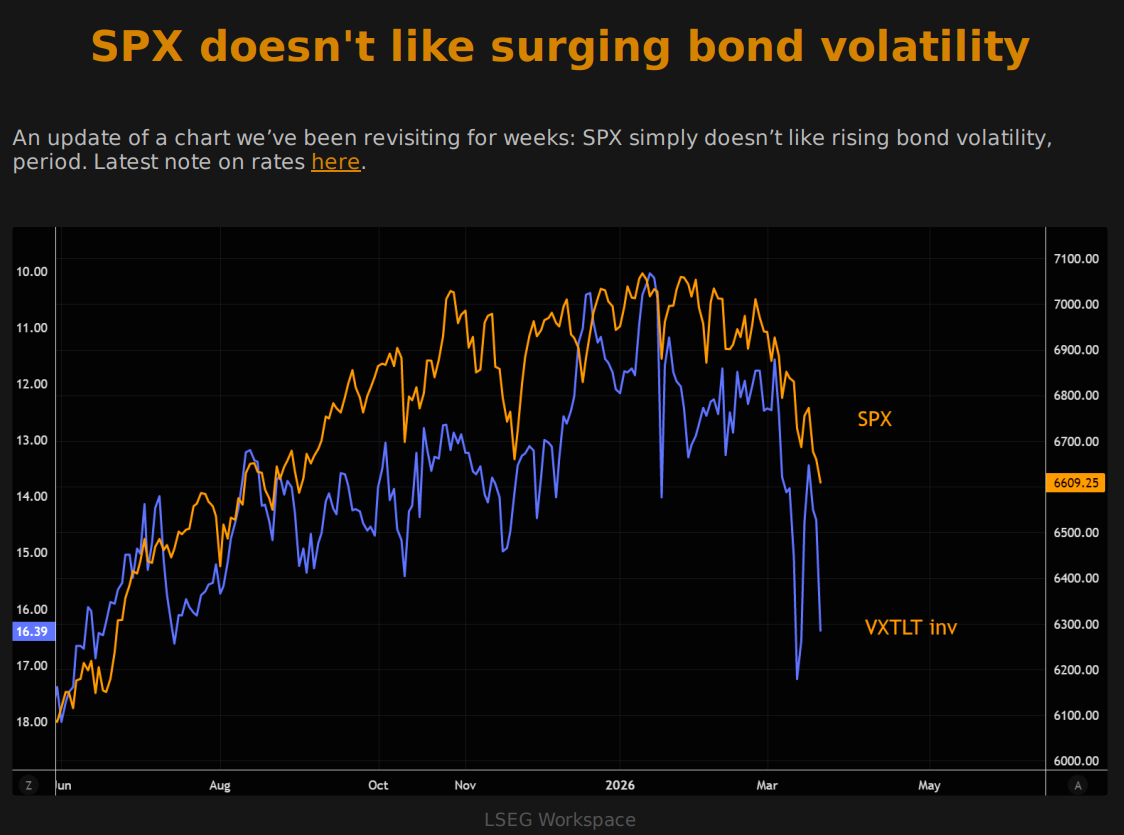 Systematic players who target volatility or manage risk parity funds look to only have started to de-risk, and we doubt many of the major real money accounts have started selling. They usually go last, and they usually define the biggest moves. Which then closes the loop we started this piece with.