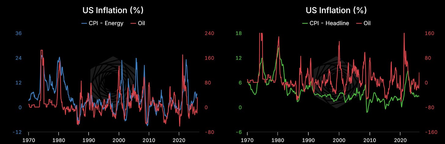 So a 100% increase in the price of oil would create an inflationary impulse around 2-3% alone, let alone the knock on effects.