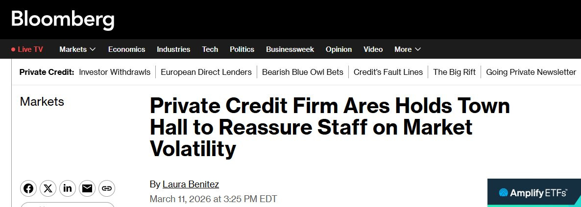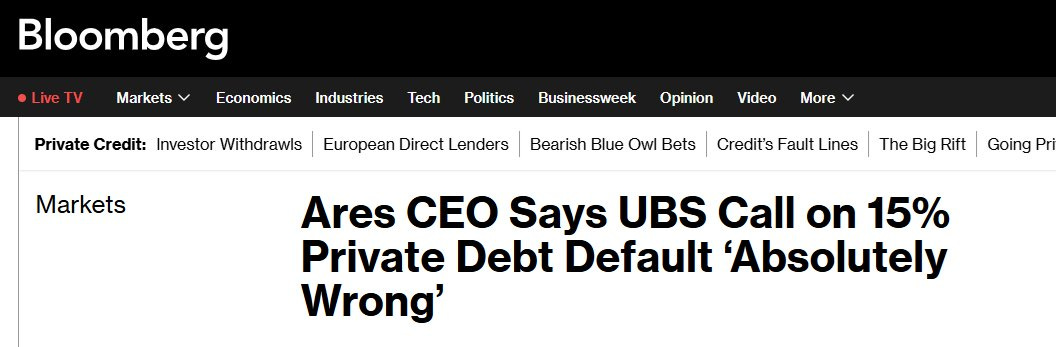 The Managers Are Getting Nervous. Ares held a town hall to reassure staff about market volatility. When management holds an all-hands to tell people everything is fine, things are usually not fine. Meanwhile, the Ares CEO is publicly pushing back against UBS’s call for 15% default rates on private debt.