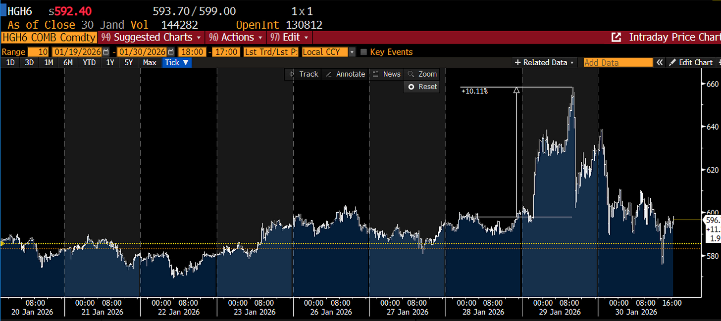 Even through Thursday AM, where the news was dominated by Copper being up 10% overnight. (Another shot across the bow that things were getting a bit unwieldy, which we will talk about in our subsequent piece on the red metal).