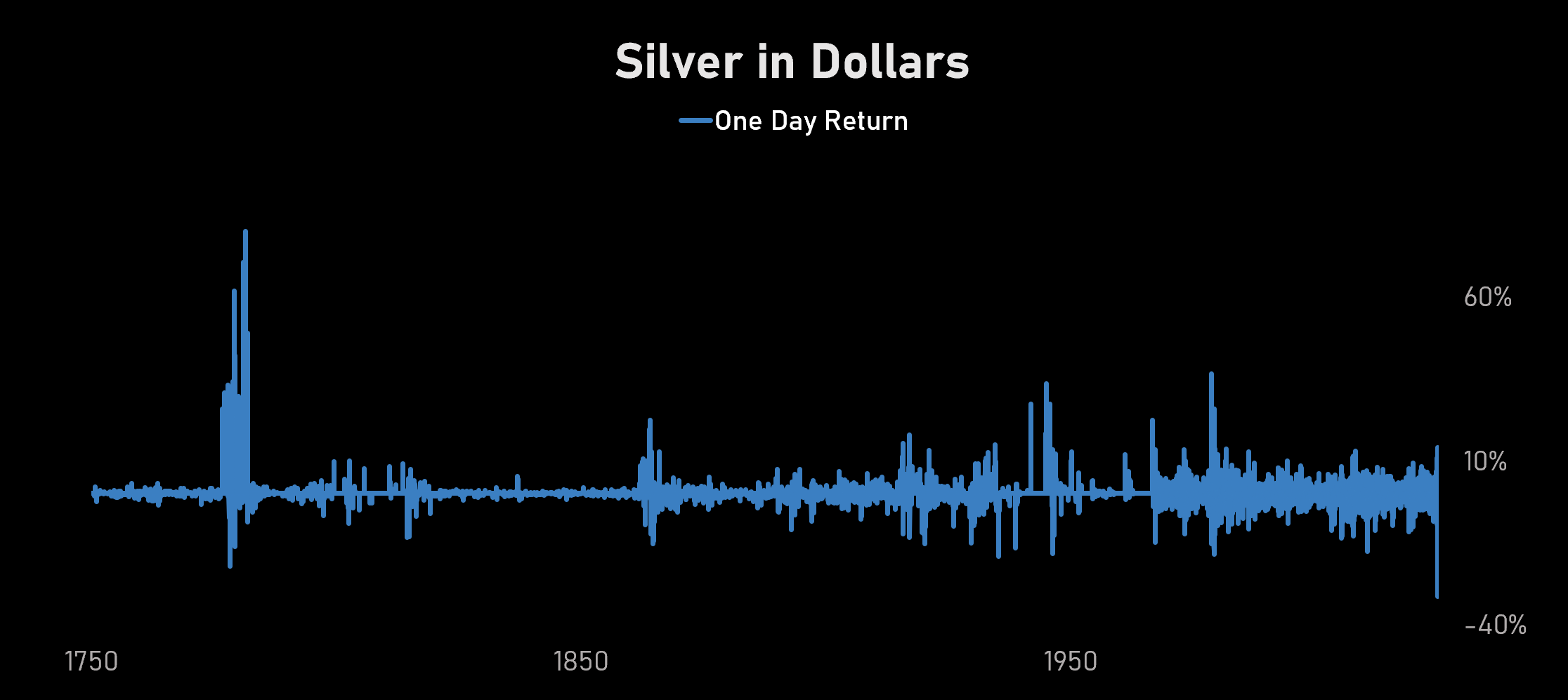 That's 275 years of silver daily returns. Friday's move is one of the largest single-day drops in the entire history of the metal. We're talking about a move that rivals the end of bimetallism, the Hunt Brothers collapse, and March 2020 - except this one came out of nowhere on a random Friday in January.