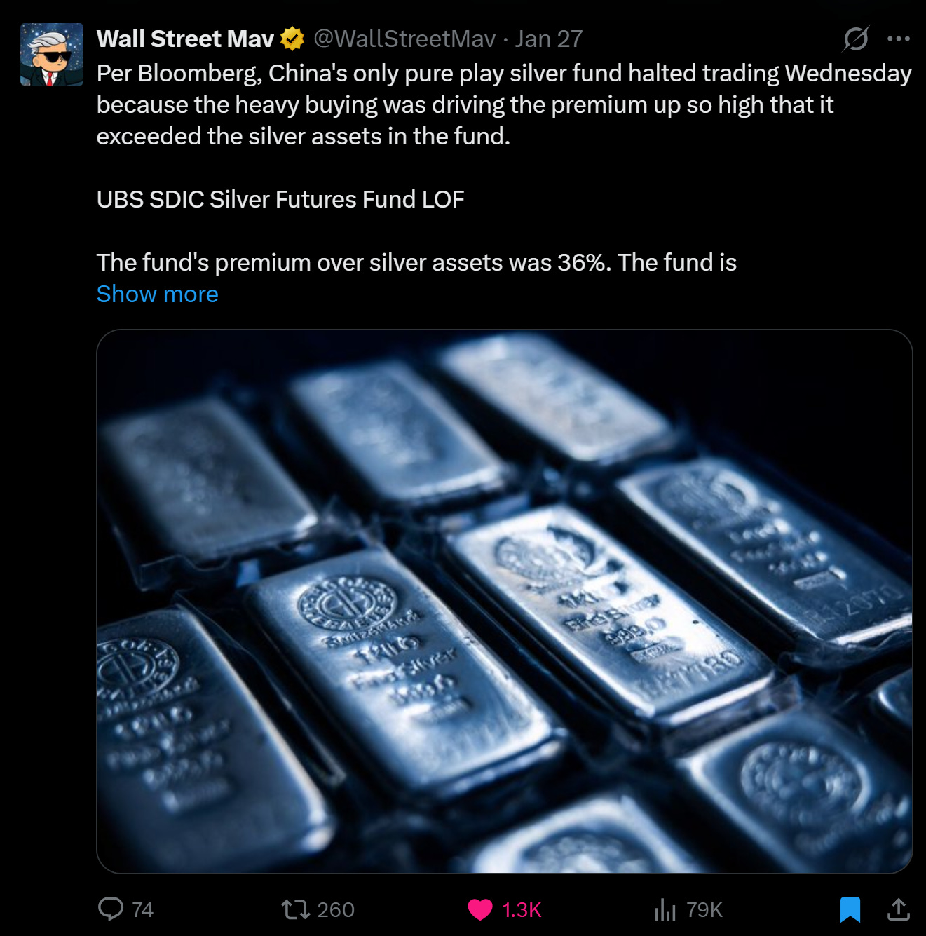 But I could feel the bearish narrative gaining traction. It didn't matter that there was corroborating evidence of this demand, such as ridiculous premiums in the only pure play onshore silver fund.