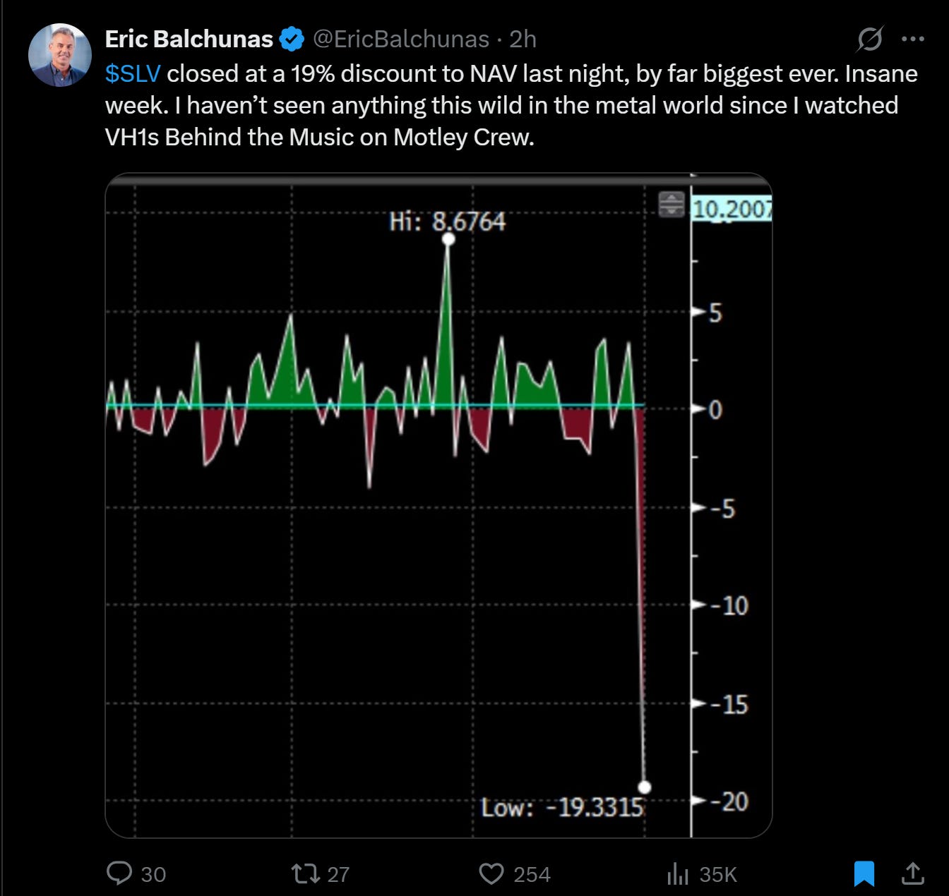 Classic case of 'do your data pipes deal with frequency well.' Same thing for claims that "SLV is trading under NAV."